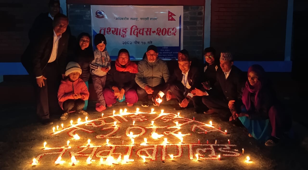 तथ्याङ्क दिवस- २०८२ को अवसरमा कार्यालय परिसरमा दिप प्रज्वलन गर्दै कार्यालय परिवार ।