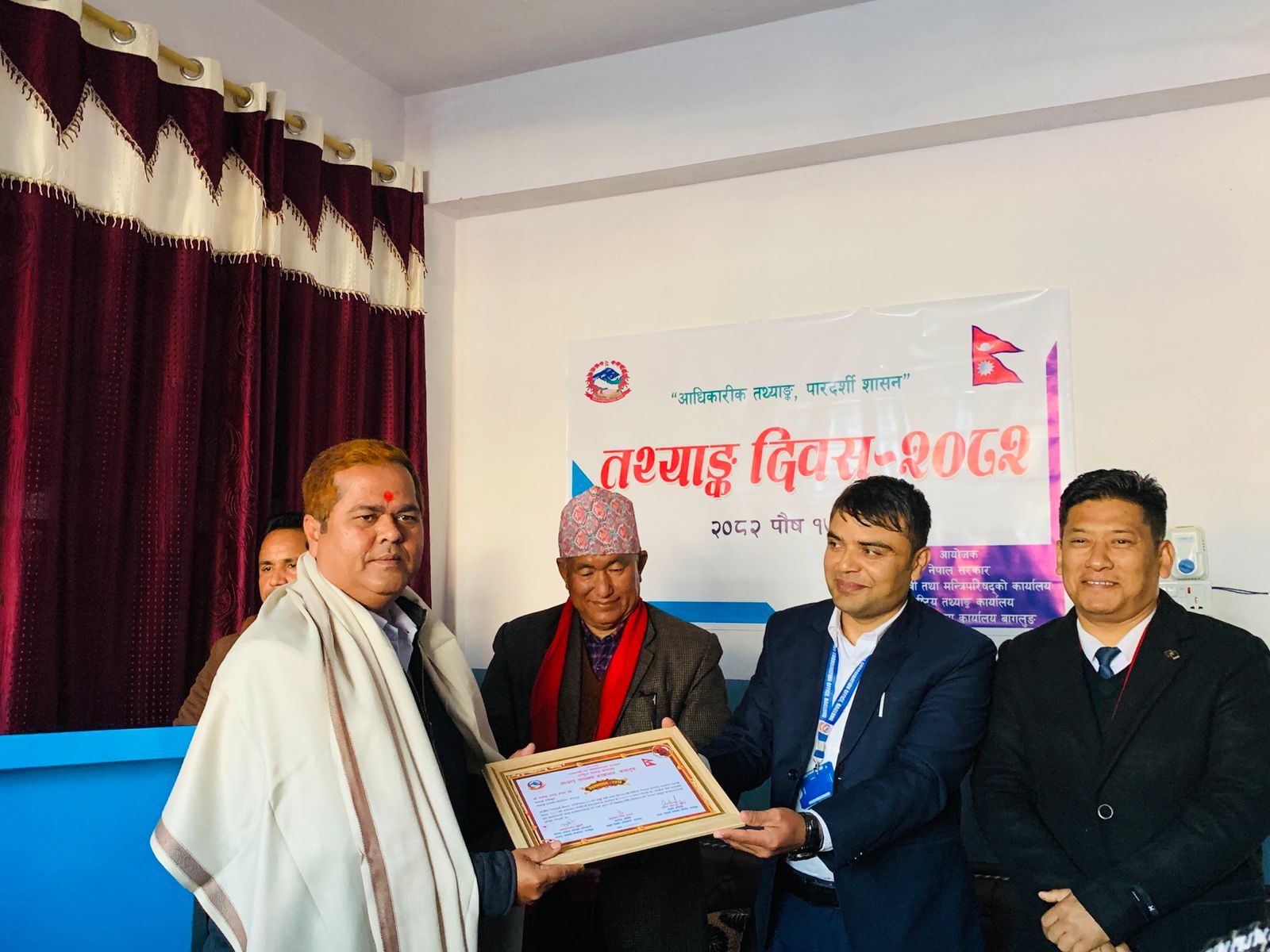 निजामती सेवामा २५ वर्ष भन्दा बढी अवधि सेवा गर्नुहुने यस कार्यलयका तथ्याङ्क अधिकृत श्री नागेन्द्र प्रसाद यादव ज्यू तथ्याङ्क दिवस- २०८२ को अवसर पारी गरिएको सम्मान ग्रहण गर्नहुँदै ।